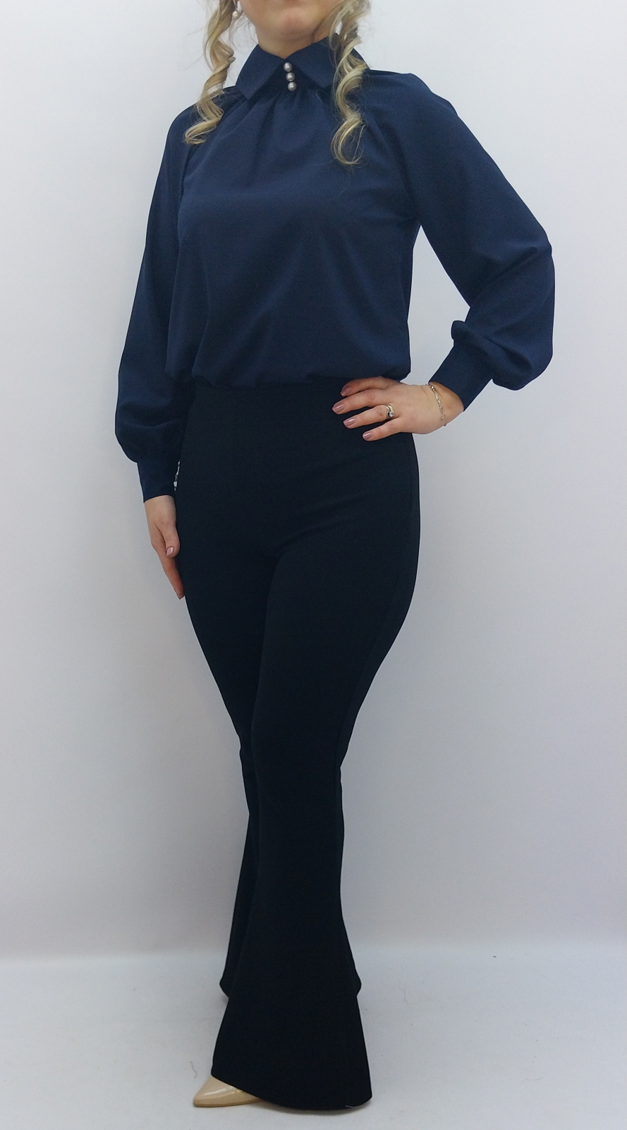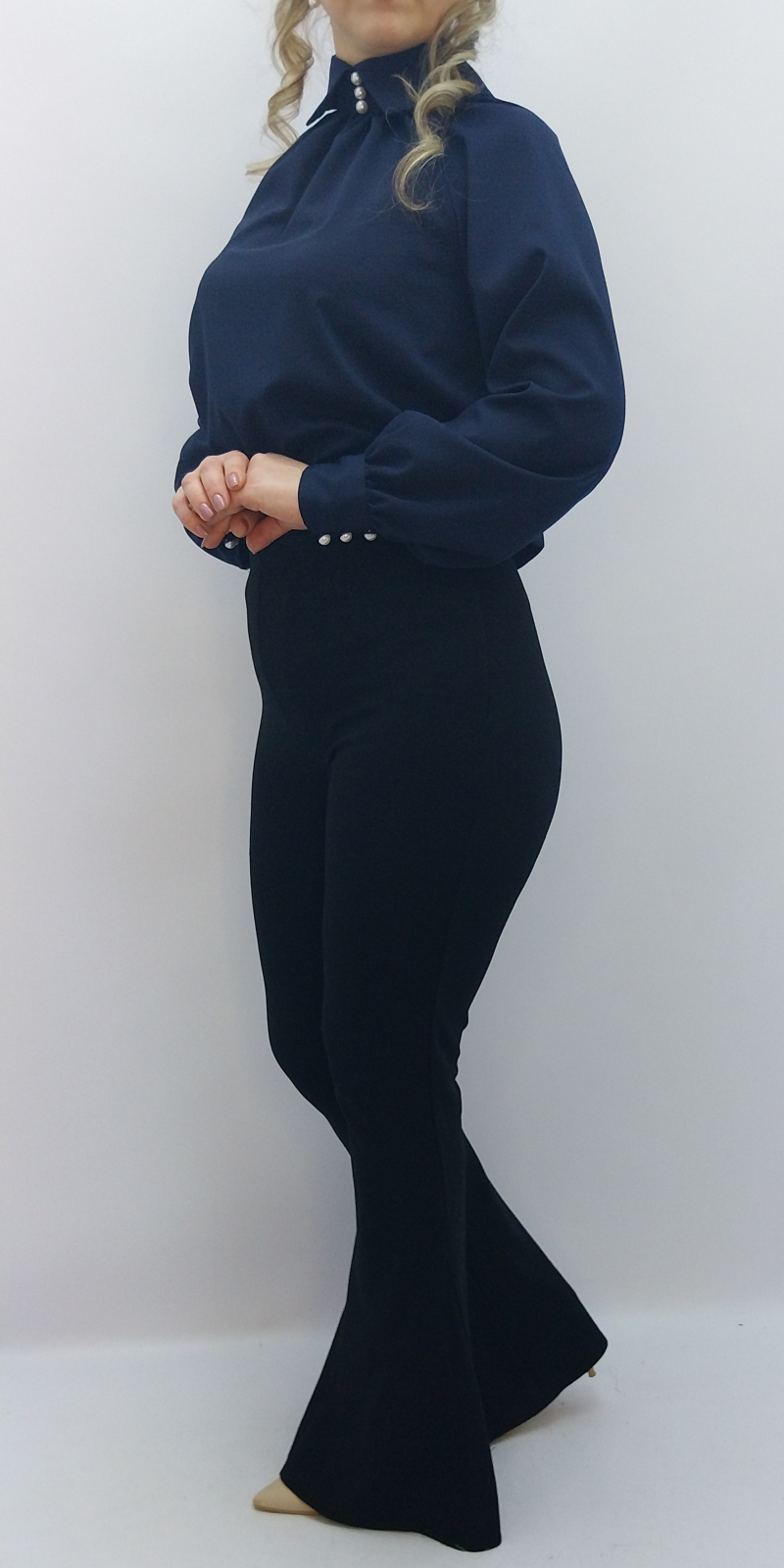 BLUZA CONFECTIONATA DINTR-UN MATERIAL TIP BUMBAC MATASOS USOR ELASTIC. BLUZA SE INCHIDE LA SPATE CU 2 NASTUREI. MANECILE SE TERMINA INTR-O MANSETA CU NASTURI.