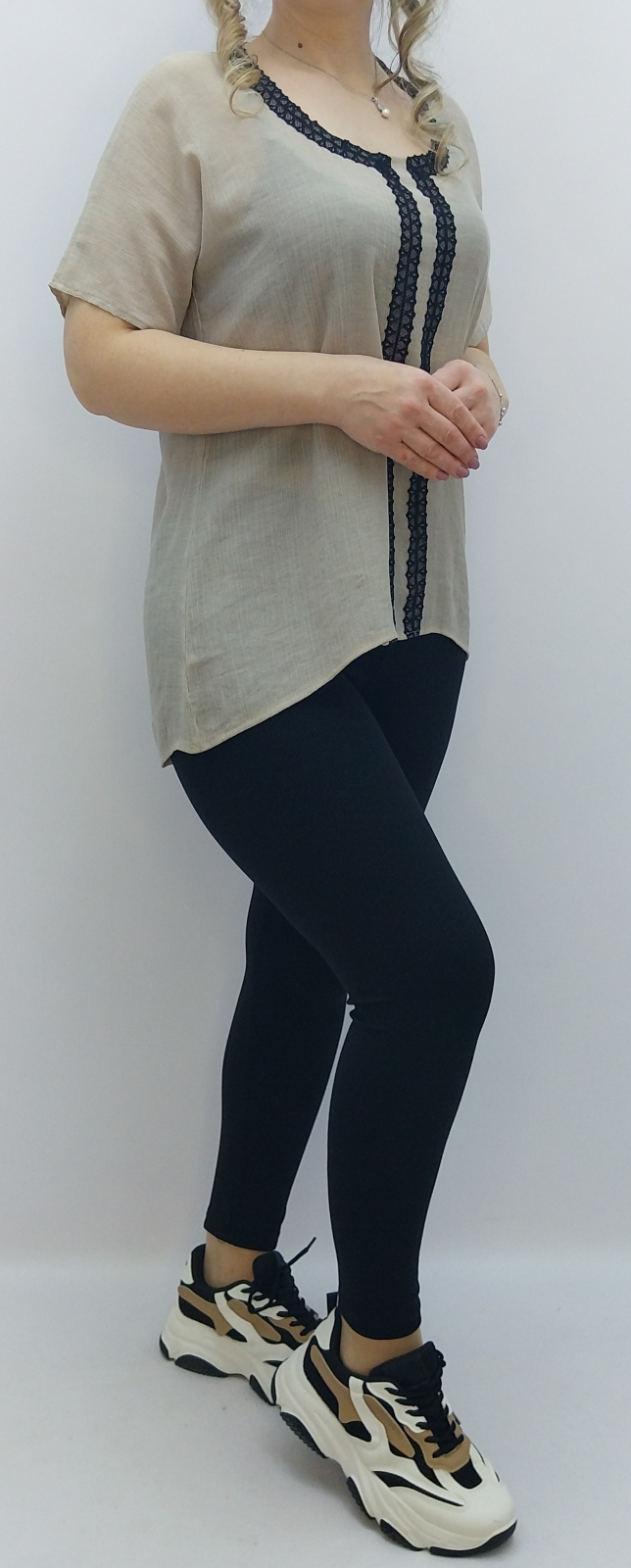 Această bluză damă bej cu dantelă aplicată în stil tradițional este o piesă versatilă, elegantă și ușor de purtat, creată pentru femeile care își doresc confort, rafinament și un aer discret autentic.