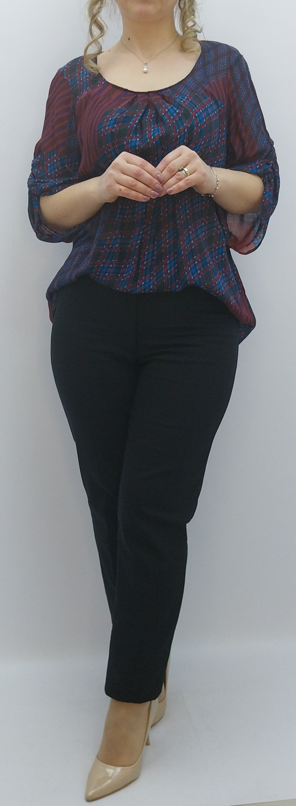 Bluza este confecționată din material fluid, ușor și respirabil, oferind libertate de mișcare și confort pe durata întregii zile, fiind o alegere ideală pentru clientele care caută îmbrăcăminte damă fabricată în România, cu posibilitate de personalizare și ajustare profesională.
