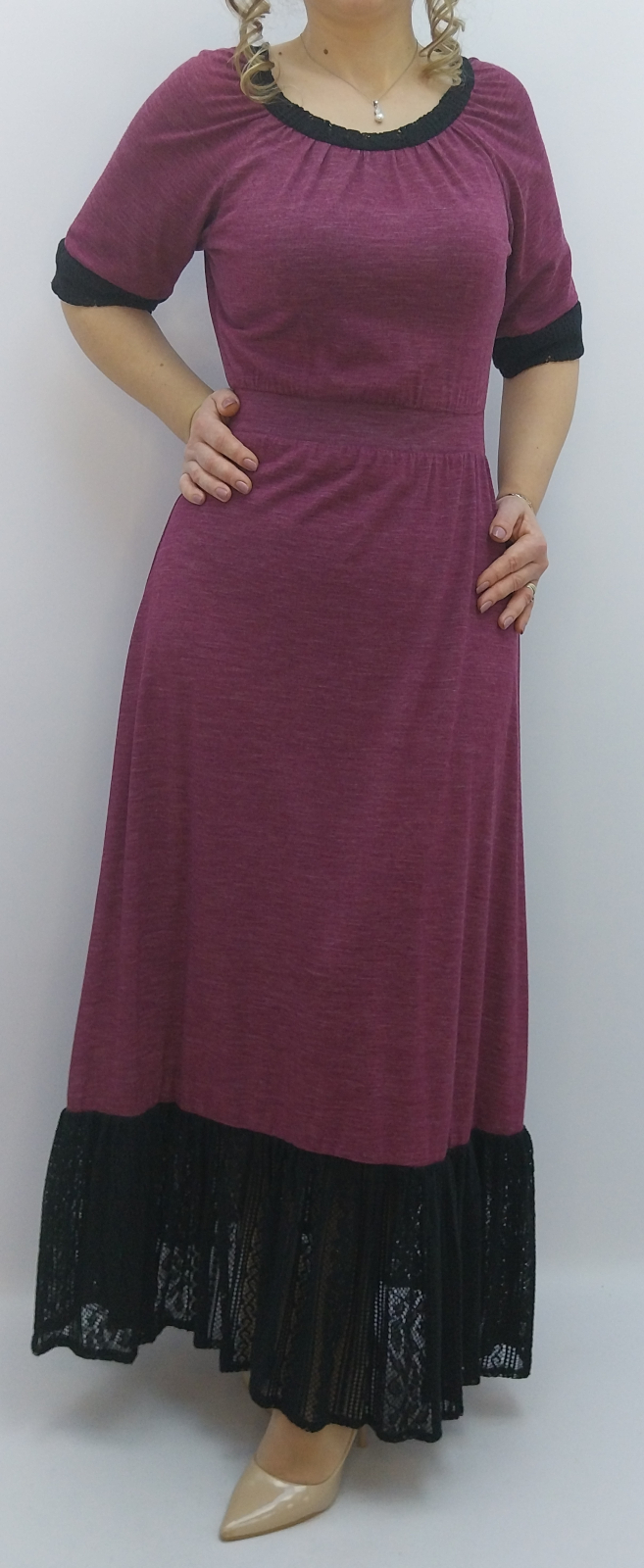 Rochie bordo din tricot moale, lungime maxi, cu inserții negre și volan din dantelă. Confortabilă și elegantă. Disponibilă și pe măsuri personalizate. DADAS Constanța.
