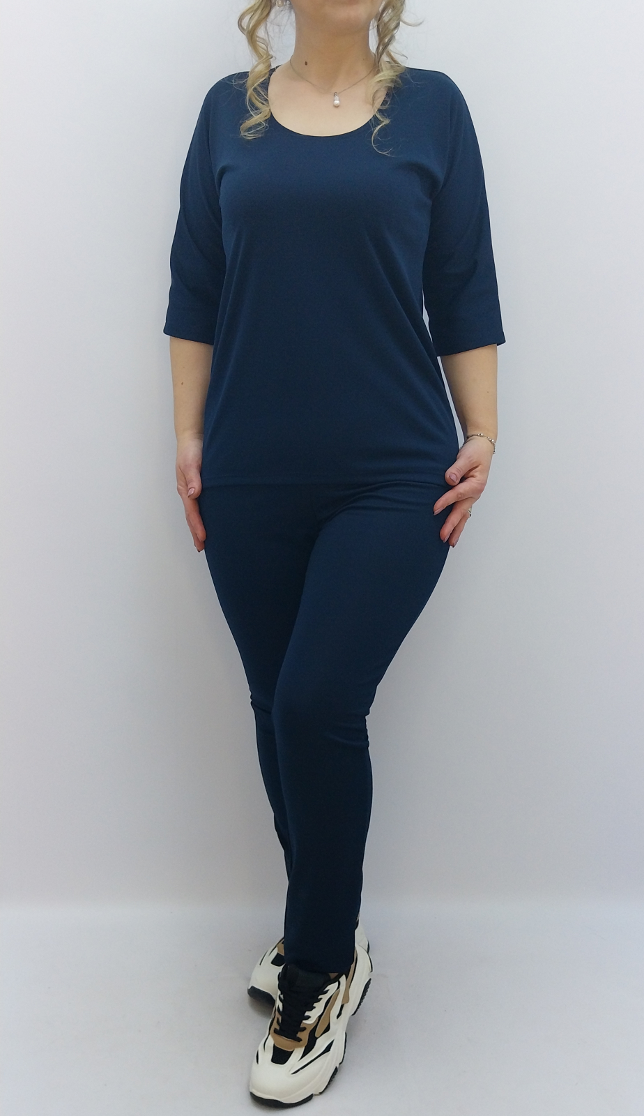 BLUZA TURCOAZ CU O MICA CODITA LA SPATE, DECOLTEU ROTUND SI MANECI TREISFERTURI