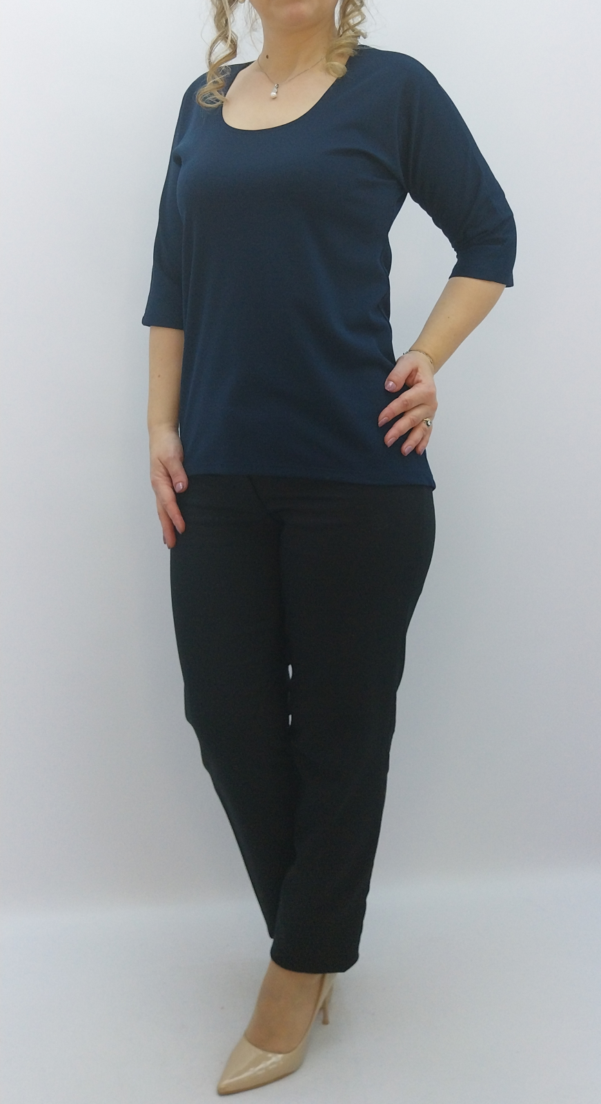 BLUZA BLEOMARIN DIN MATERIAL TIP TRICOT SCURTUTA IN FATA SI MAI LUNGA IN SPATE, CU MANECI SCURTE