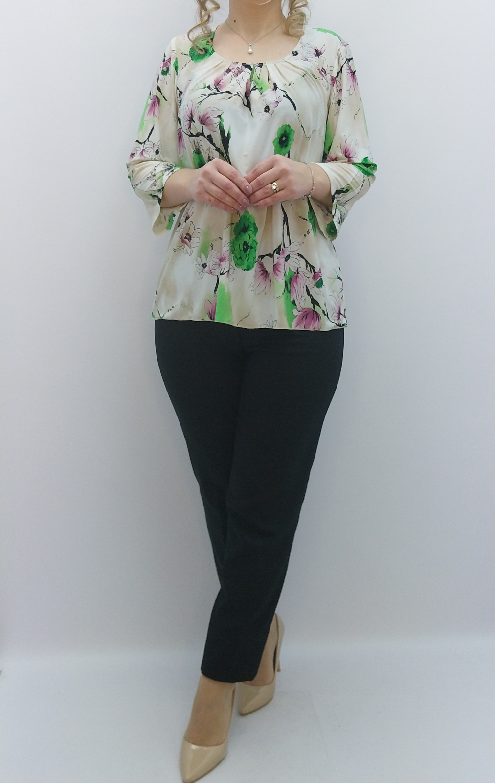 Această bluză damă crem cu imprimeu floral verde-roz este o piesă vestimentară versatilă, creată pentru femeile care își doresc eleganță discretă, confort zilnic și libertate de mișcare în activitățile de zi cu zi. Materialul fluid și croiala lejeră oferă o purtare plăcută, fiind ideală pentru ținute office, casual sau smart-casual.