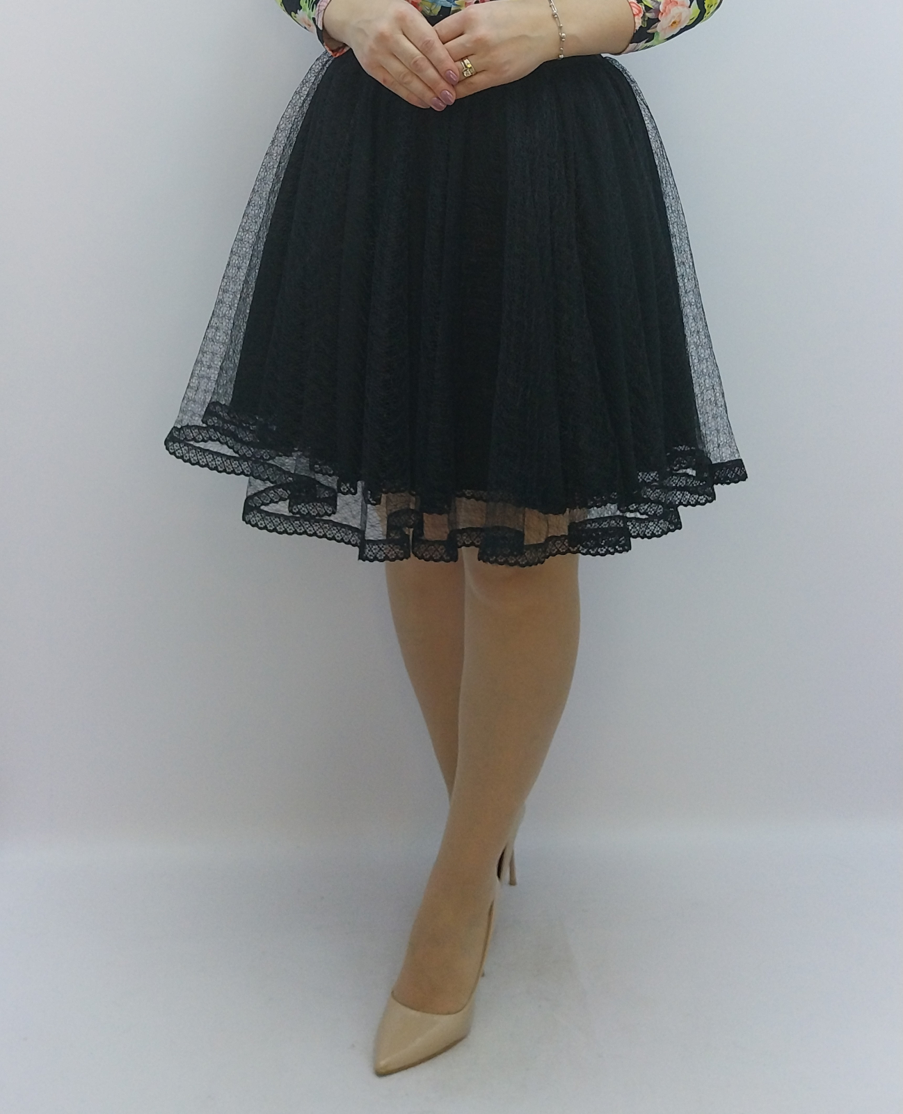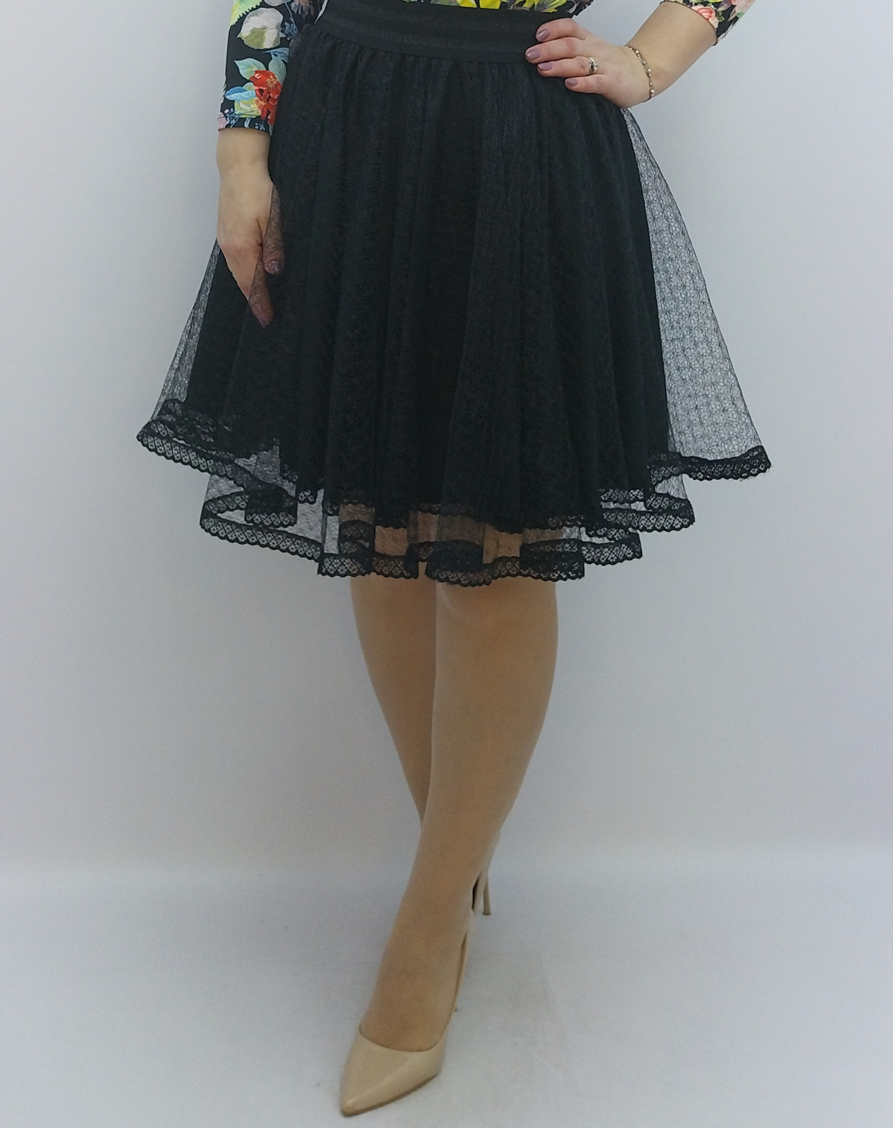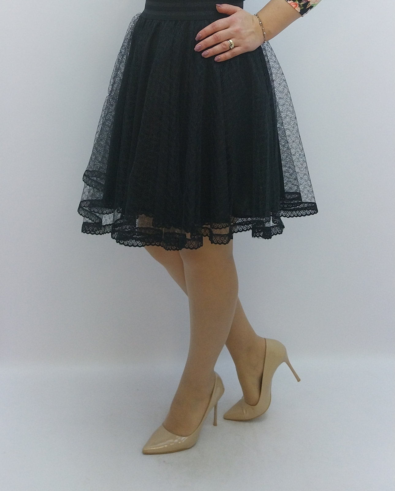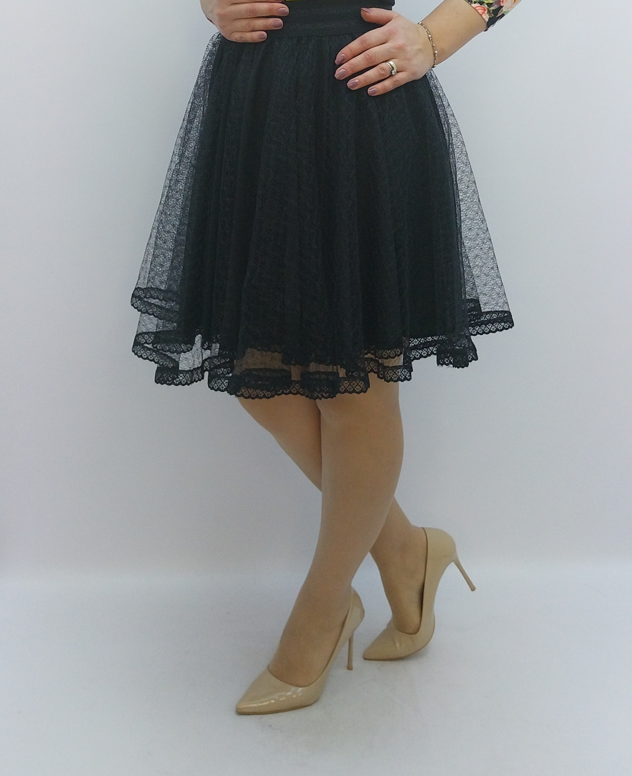 Fusta din plasă tip tiul cu terminație delicată din danteluță este alegerea perfectă pentru femeile care își doresc o apariție rafinată, romantică și modernă în același timp. Volumul ușor amplu oferă lejeritate în mișcare, iar terminația din danteluță adaugă un plus de finețe și eleganță.