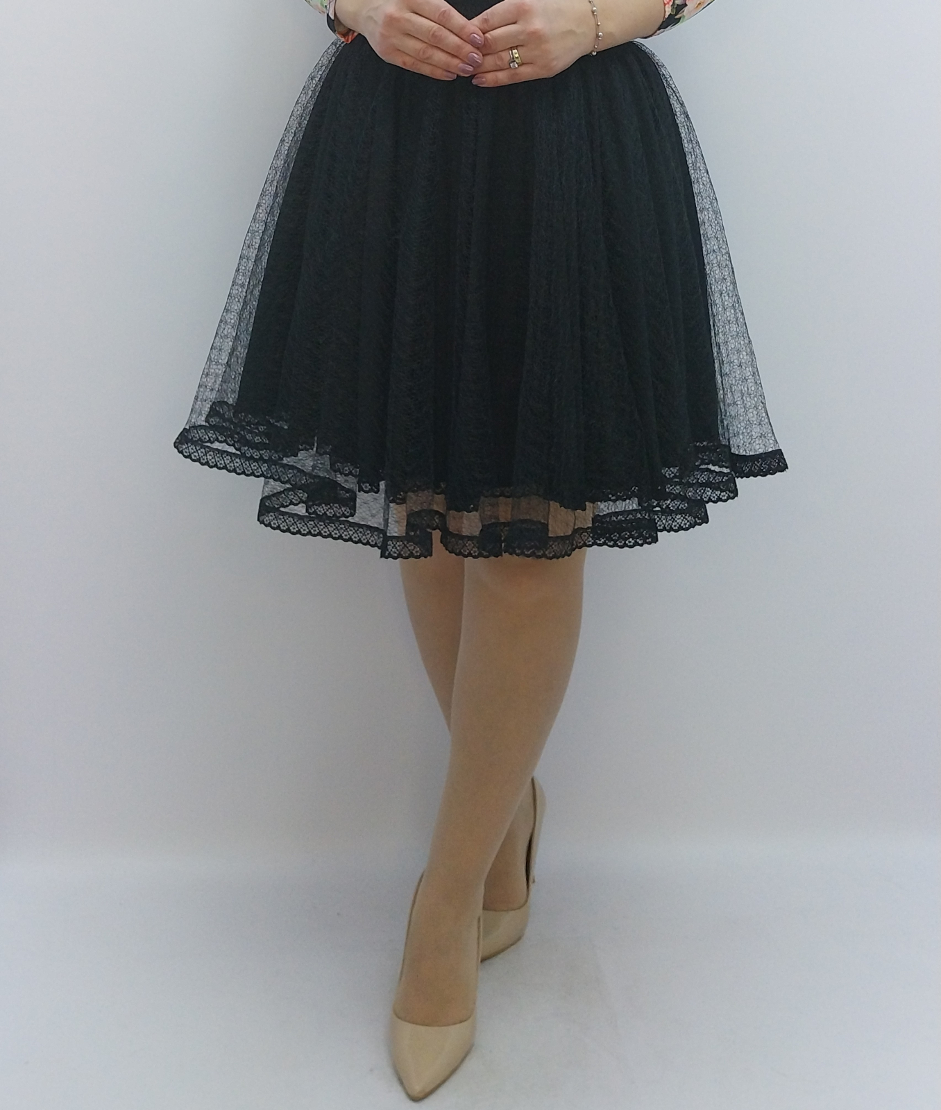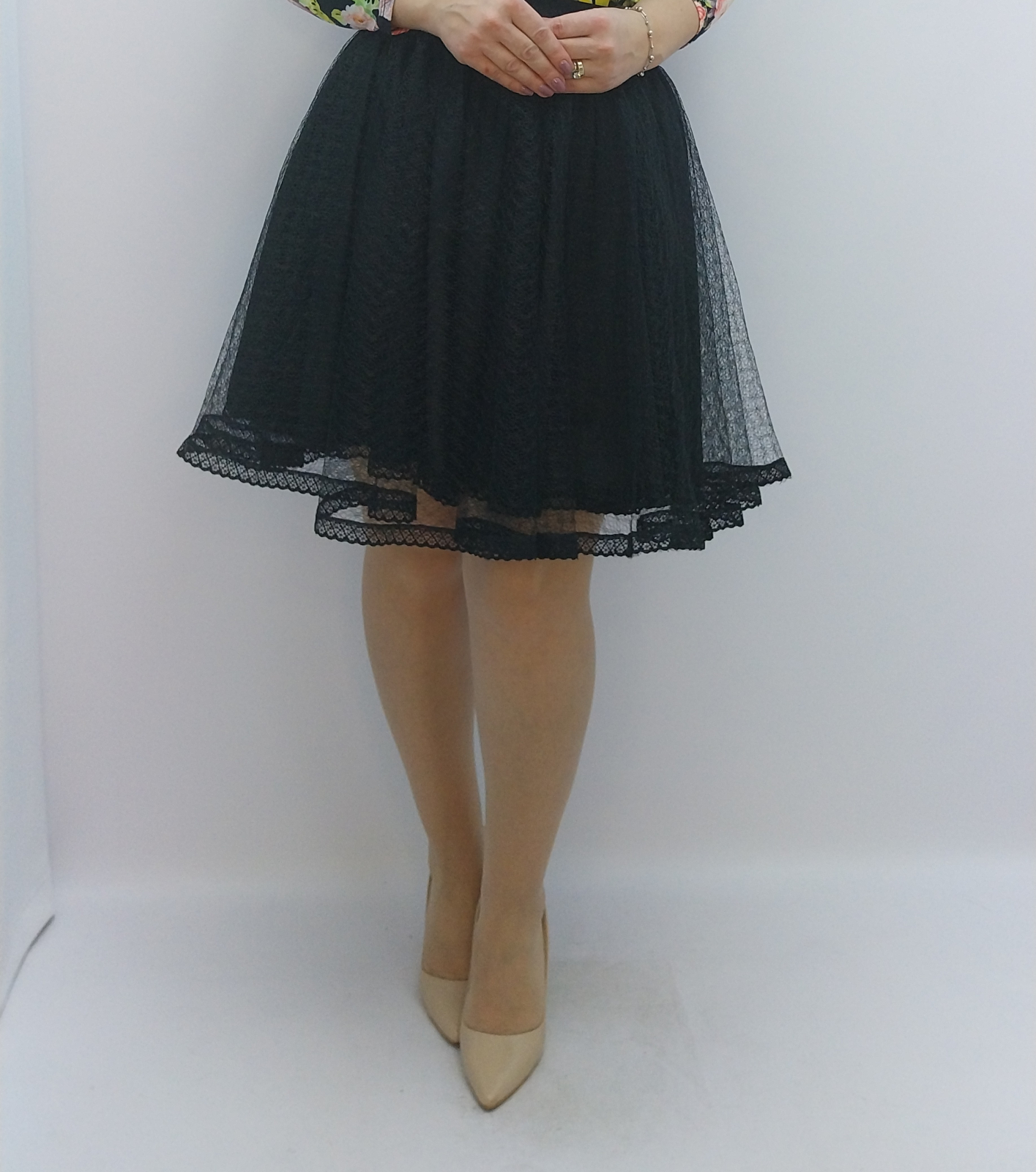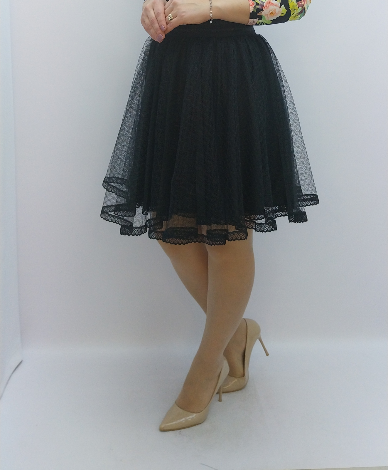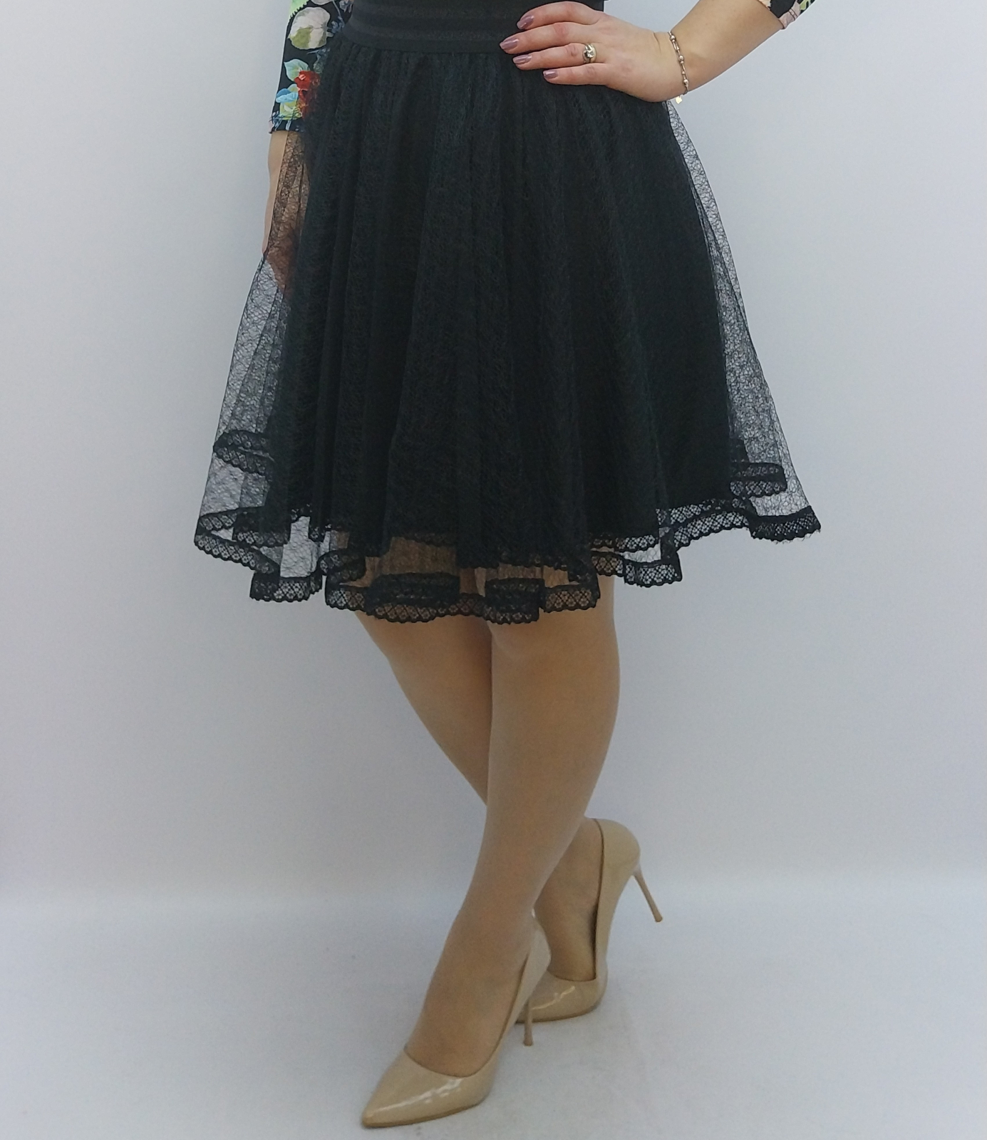 Fusta din plasă tip tiul cu terminație delicată din danteluță este alegerea perfectă pentru femeile care își doresc o apariție rafinată, romantică și modernă în același timp. Volumul ușor amplu oferă lejeritate în mișcare, iar terminația din danteluță adaugă un plus de finețe și eleganță.
