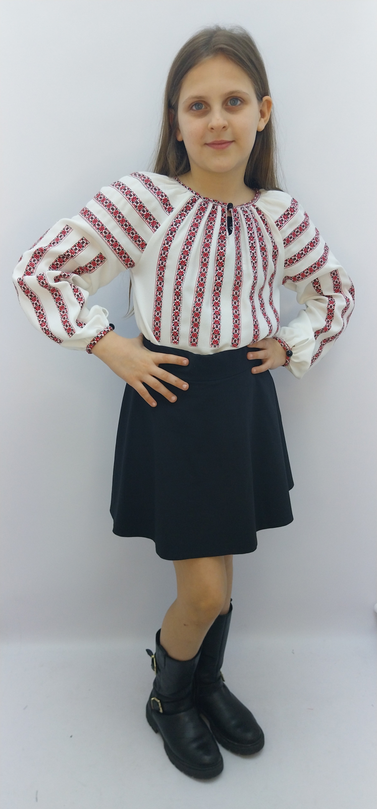 IE TRADITIONAL POPULARA STILIZATA CU MODEL INGUST CONFECTIONATA DIN CREP DE CALITATE SI CU BENTITE LA DECOLTEU SI MANECI SUBTIRI