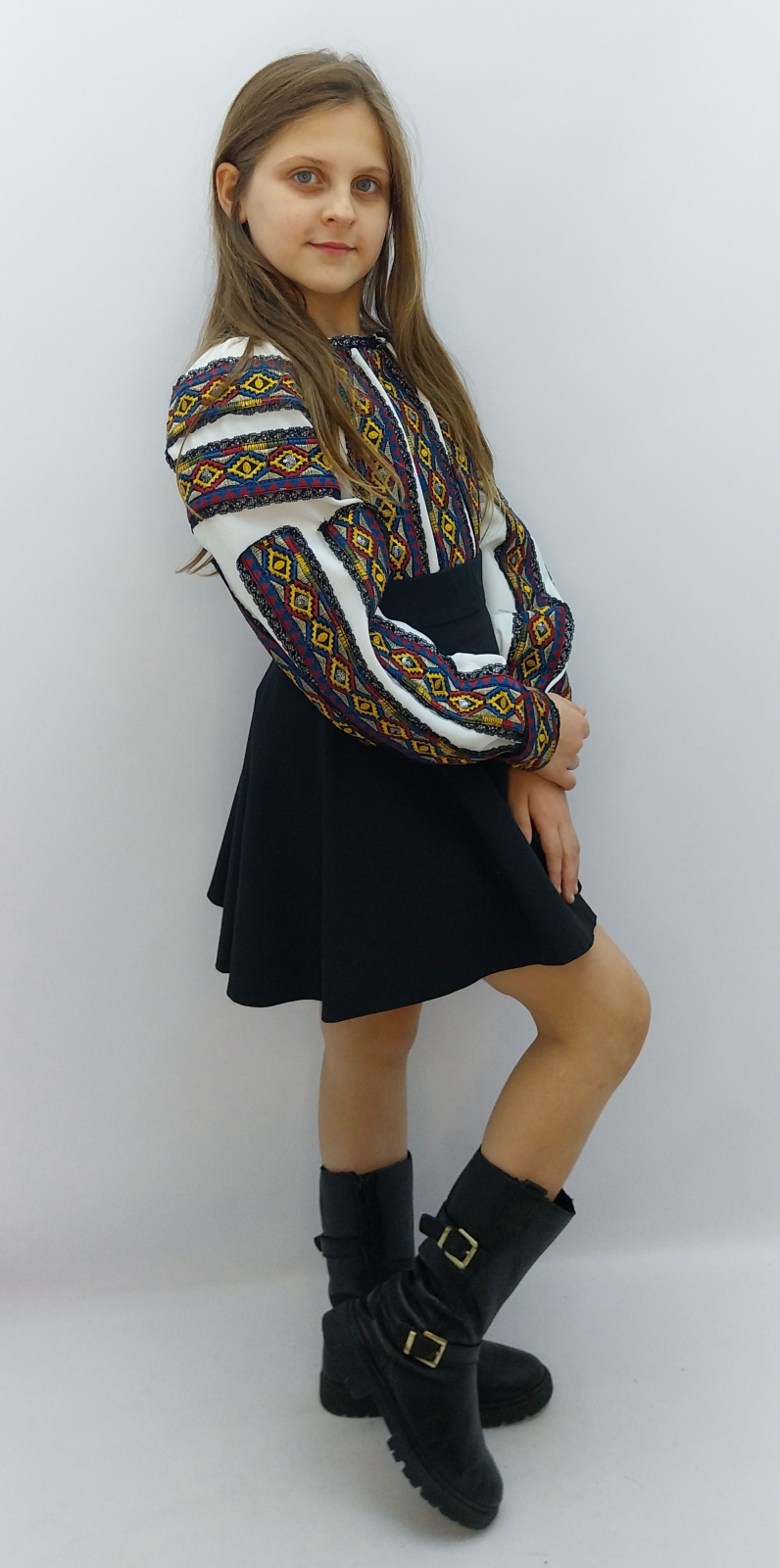 COSTUM TRADITIONAL POPULAR STILIZAT COMPUS DIN IE DIN CREP CU MODEL POPULAR STILIZAT SI FUSTA CLOS NEAGRA